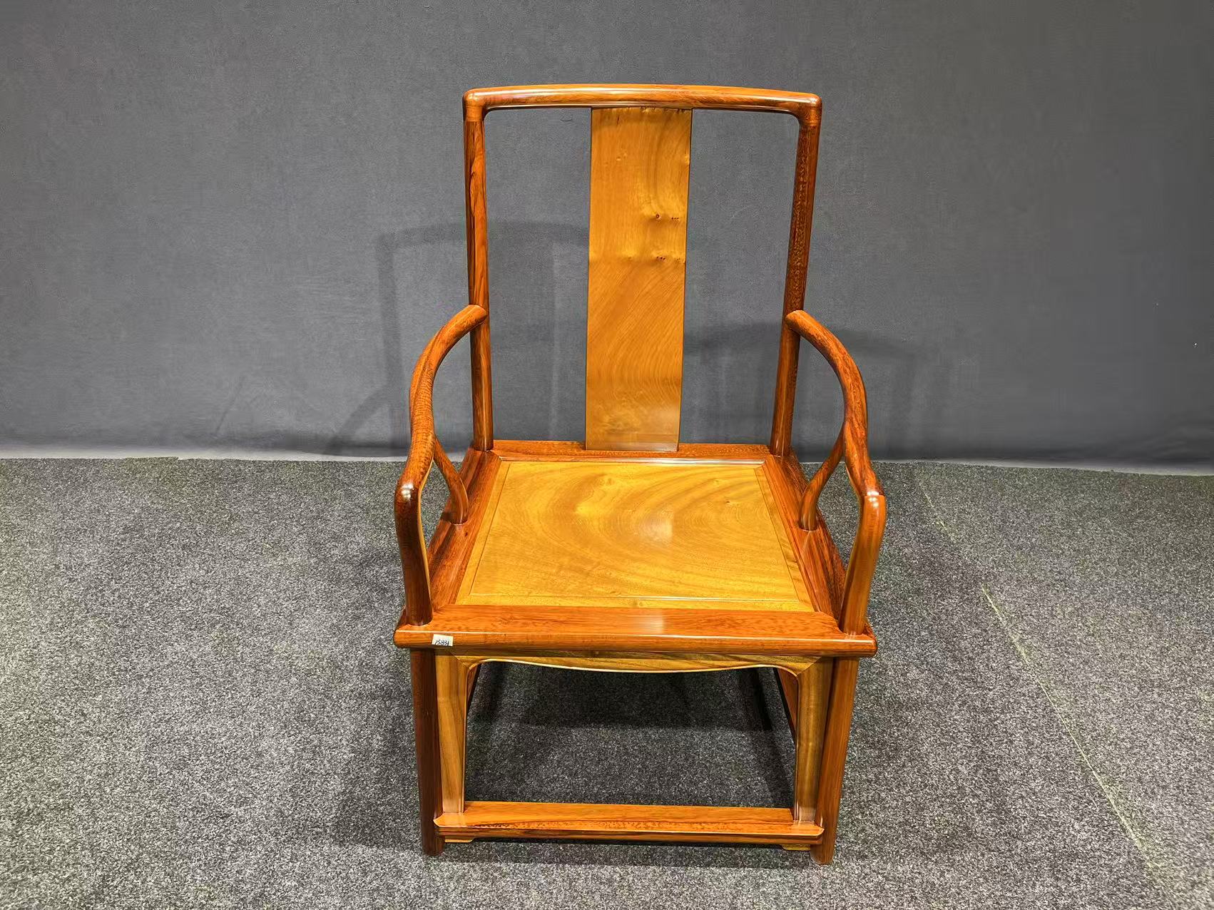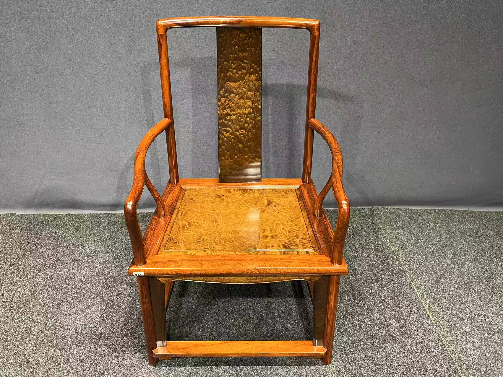 【15831蛇纹木镶金丝楠扇面椅】